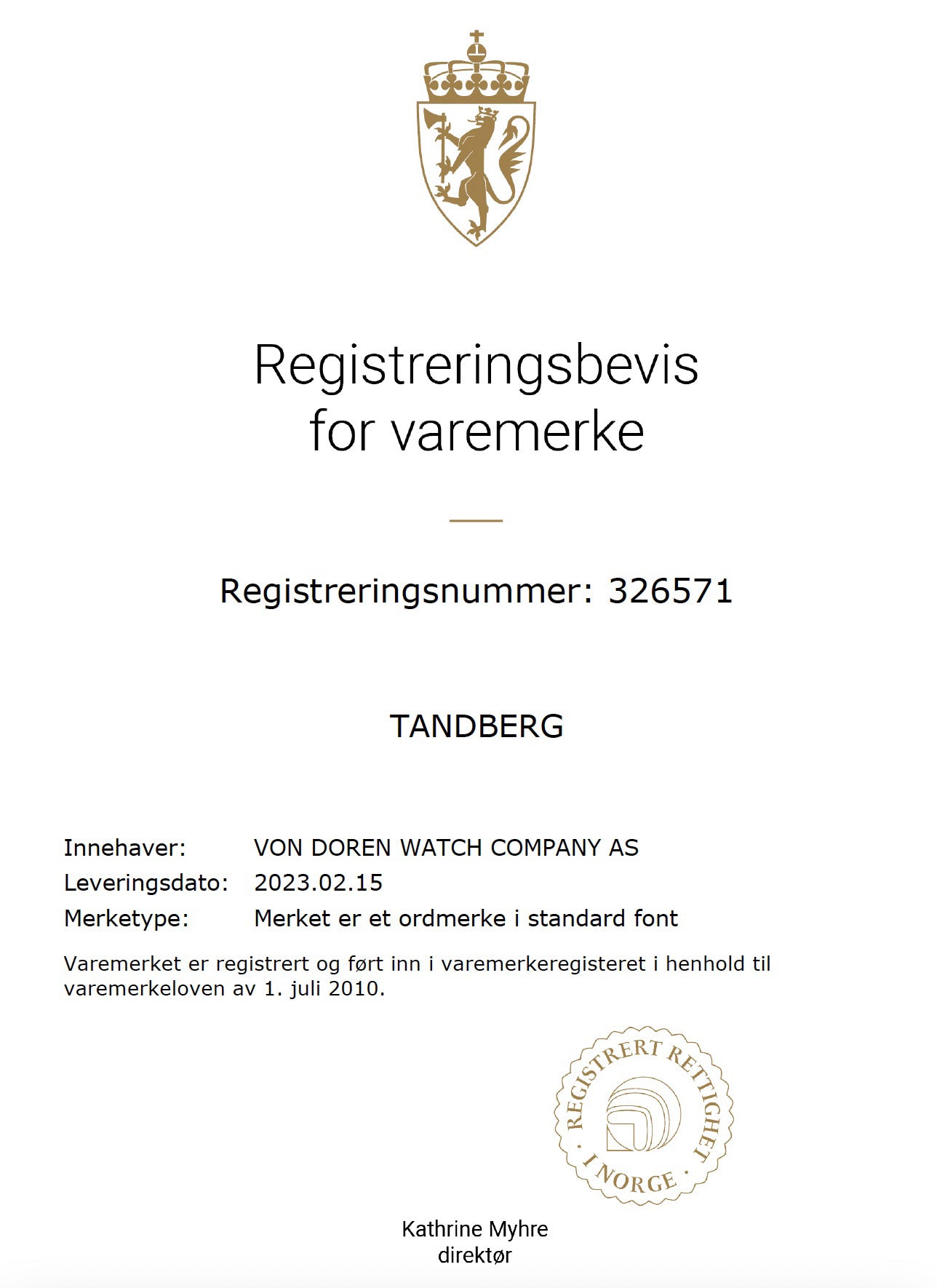 Founder Øyvind Von Doren received his first Silver Super 10-72 as a boy and has been an avid collector of Tandberg products ever since. The watch has been under development for almost three years, and in February 2023, Von Doren was granted the Tandberg trademark for mechanical watches by the Norwegian Patent Office.